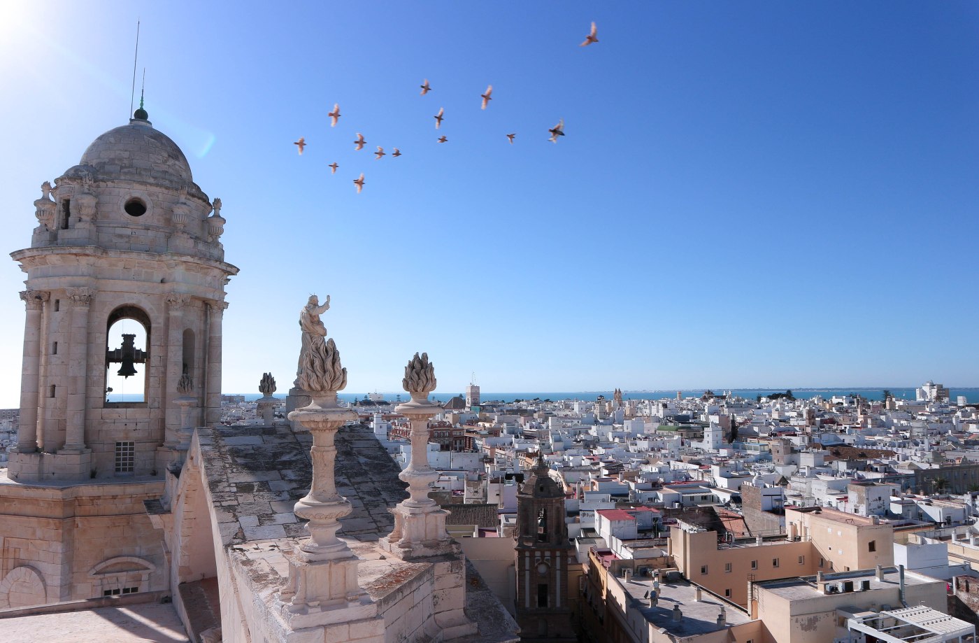 But when the Romans left Cádiz, leaving behind their language and their letters, new gods from other parts of the Mediterranean came to replace the old – first from Arabia with the Prophet Muhammad, then from Palestine with the Prophet Christ. Today, the single-most defining feature of the gatidiano skyline is the Cathederal, a two-tone monument from whose bell-tower this city can best be seen: a whitewashed city is seen, its buildings form a foam from the sea constantly crashing onto the island. From the white mass of buildings shoot up over a hundred little watchtowers; lookouts from which Cádiz’s wealthy merchants could see the sea’s moods, the sky’s designs.
