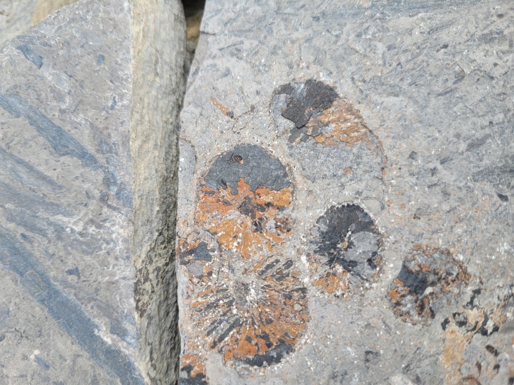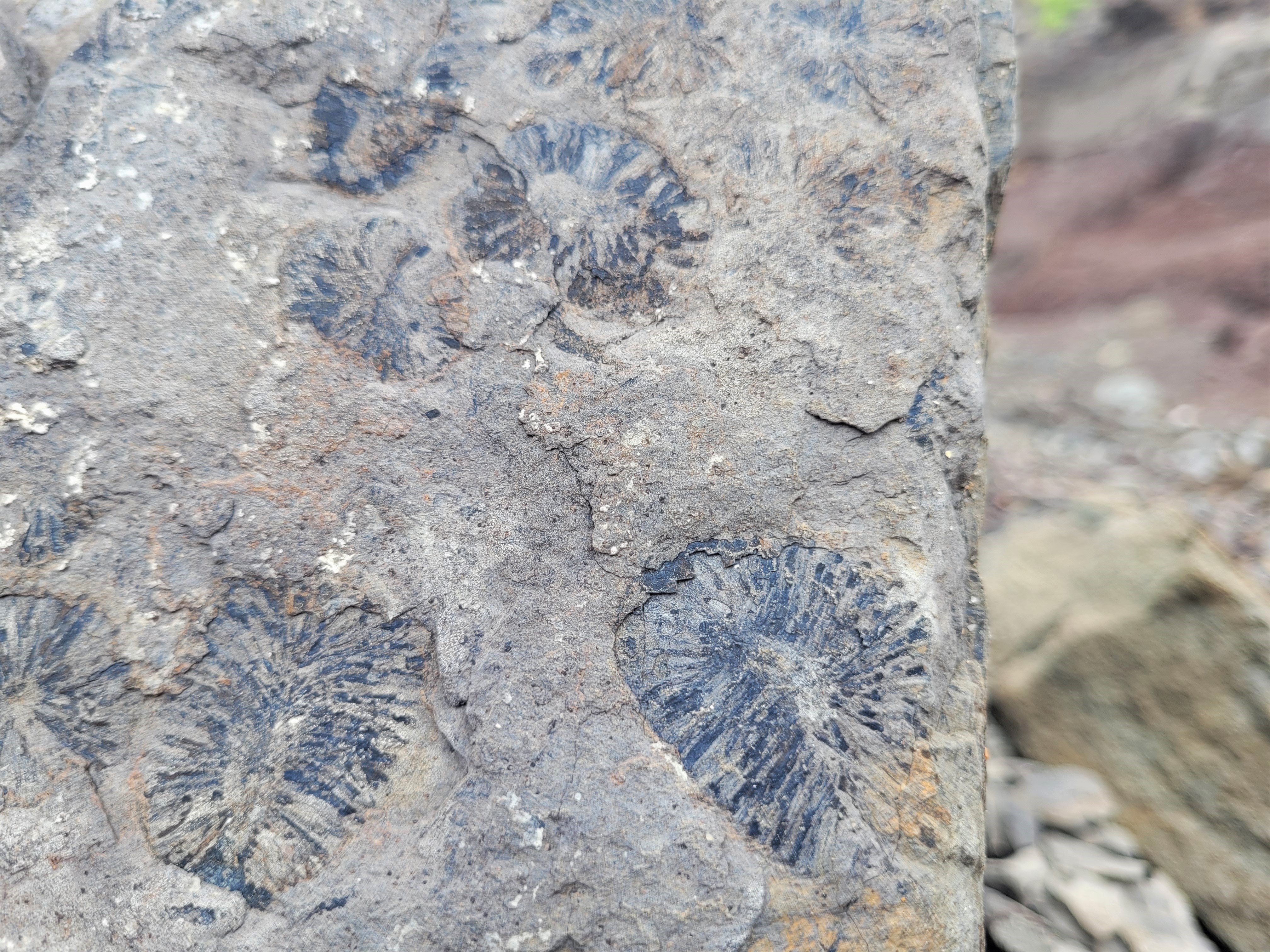 More commonly found are traces of plant life (see above), especially the leaves, stems and cones of the Cylostrobus sydneyensis, a type of herbaceous lycopsida which held its spores in compact cones. Other plants that can be seen in the rocks are stems of the horsetail fern, Phyllotheca australis, and leaves of the seed fern Dicroidium.