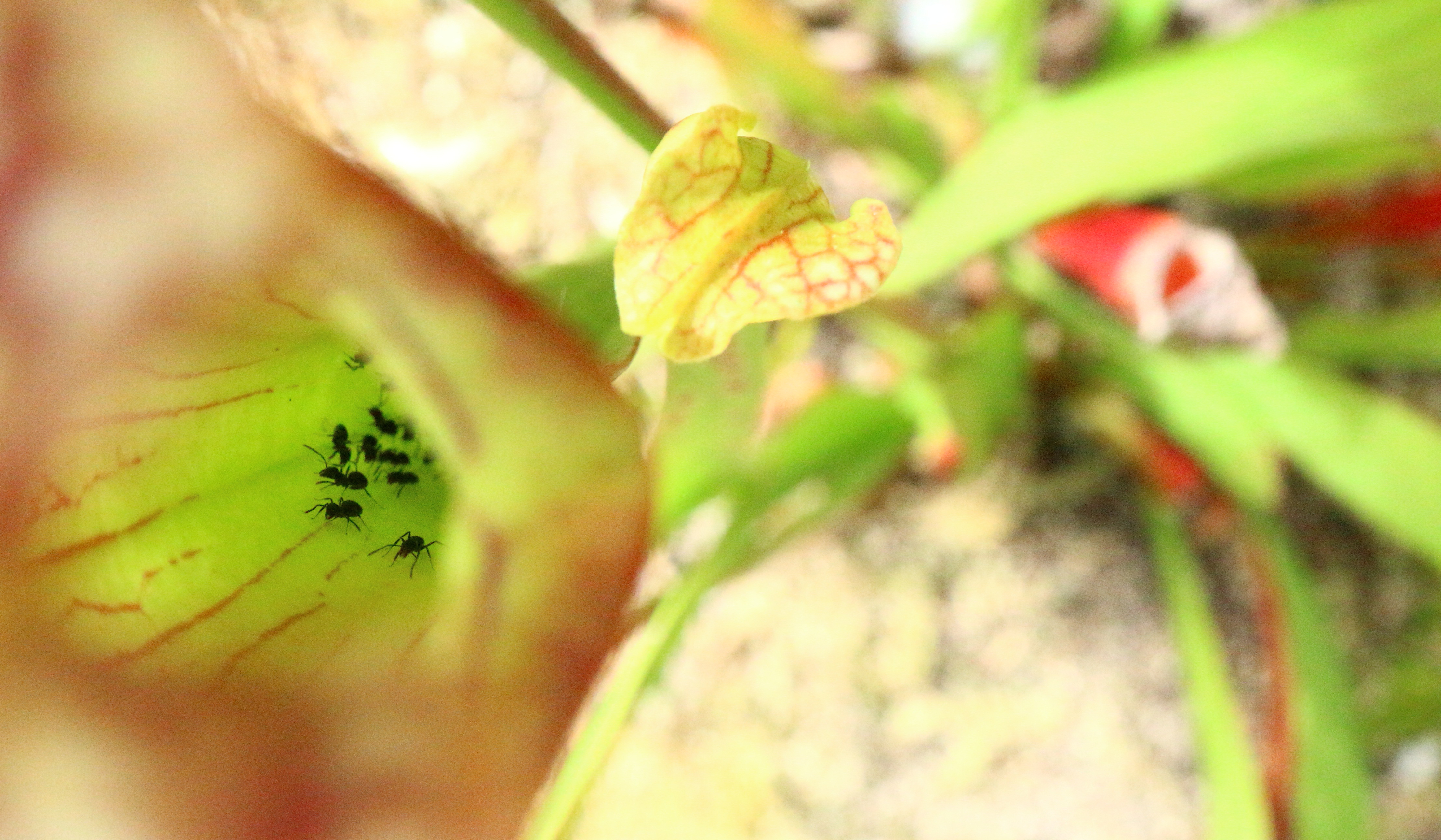 Above: ants meet their doom in a pitcher plant (Sarracenia leucophylla) at the Sydney Royal Botanic Gardens.