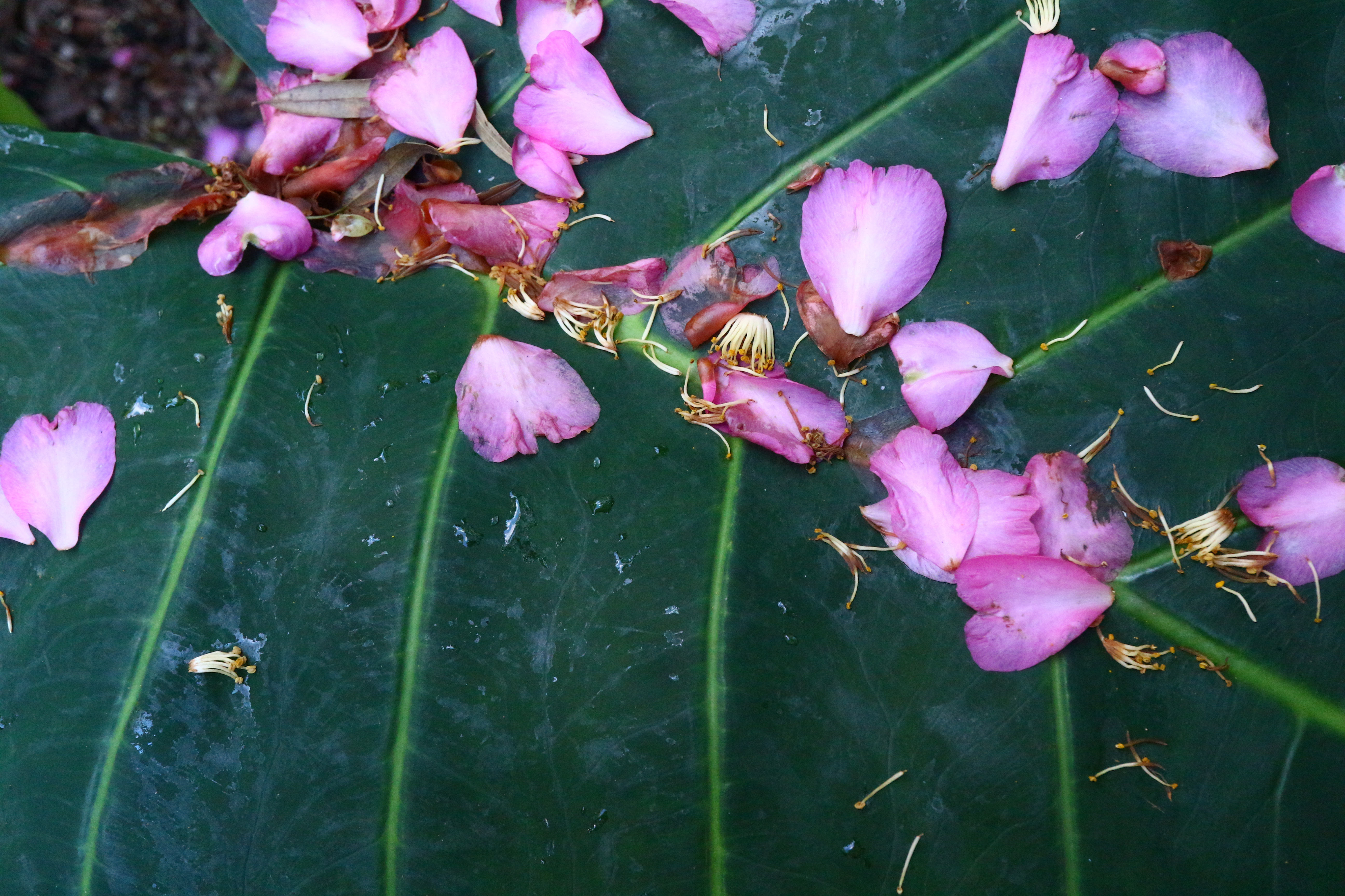 Amid the cycads and the palms, we stop in the rainforest garden to ‘meet a tree’, an exercise wherein the forest bather takes a moment to observe a particular specimen; I stop by a gigantic black bean tree (castanospermum australe) with its seed pods hanging from its canopy, and underneath, its seeds from last season sprouting in the leaf litter. Feel its bark, see how its colour changes, marvel at its fruits and flowers – these are the simple recommendations for meeting a tree.