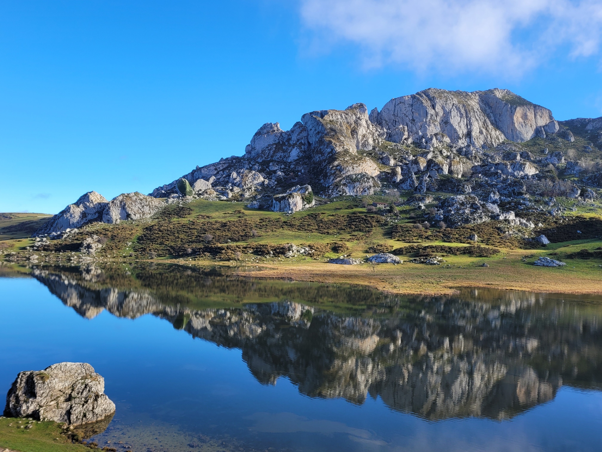 Lago Ercina, at 1,108 metres above sea level, and a humid depression in the Picos de Europa formed by dissolving subterranean limestone.