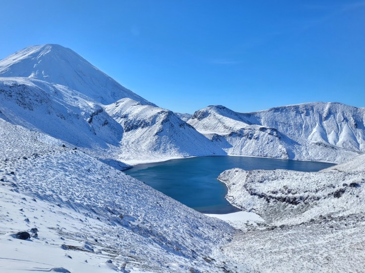 The mega-volcano towers over New Zealand’s north island at 1,978 metres, clashing with the ocean winds to create its climate of constant rain, freezing air, and blizzards of white ice and snow.