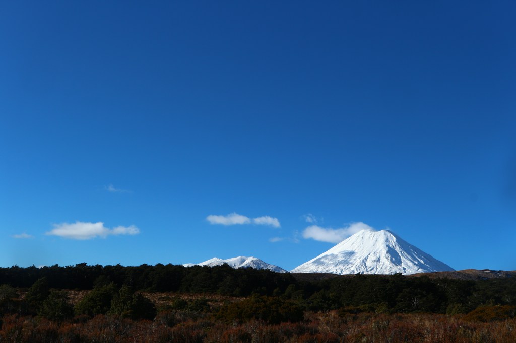 No matter how many times you look at Mount Tongariro, you feel the same awe when first seeing it emerge from the white. Its snow-swept sides, its changing colours throughout the day, its valleys carved from ancient glaciers and its twelve cones blasted through the earth’s crust over millennia, together paint a landscape of immense beauty.